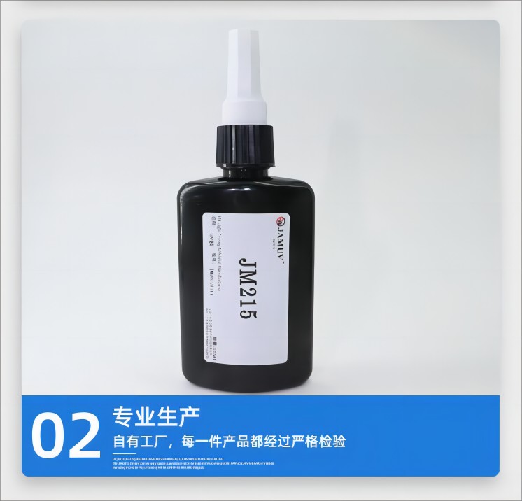 产品介绍 JM215是一款单组份、通过紫外线光固化的水解UV水解胶,主要用于边缘金属粘金属、切割、研磨、抛光等加工的临时粘接作用。JM215对玻璃与金属、陶瓷等具有一定的附着力,适合玻璃与玻璃、金属或陶瓷治具的粘接,在加工时不会脱落,同时可根据客户要求进行配方调整。该产品可在85℃以上水中进行水解脱落水解分离。