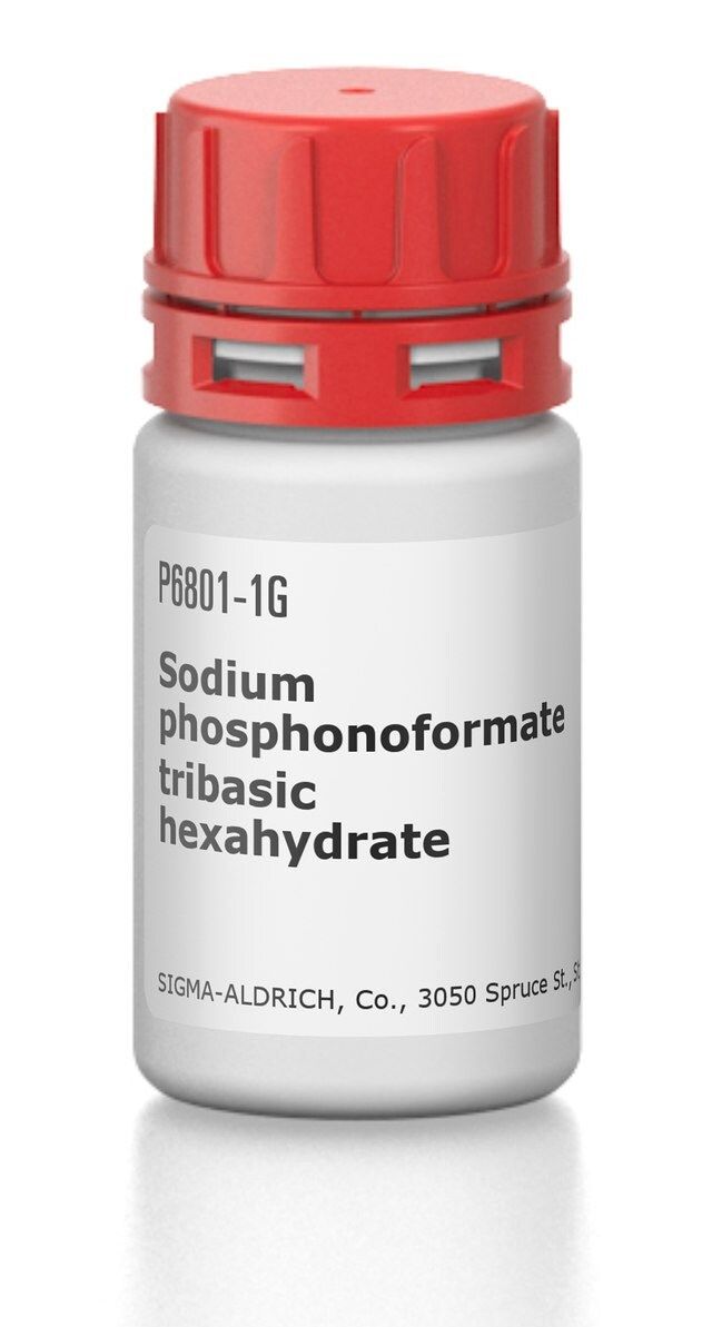 | 应用 | Sodium phosphonoformate hexahydrate acts as an antiviral agent and reverse transcriptase inhibitor. It is also used to inhibit viral DNA polymerase. Further, it is used as a type II Pi transporter inhibitor. |