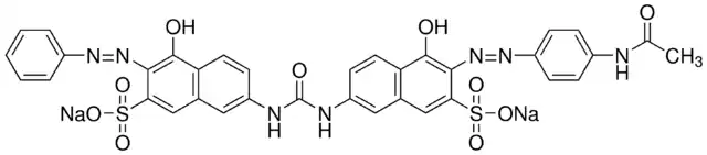 | SMILES string | [Na+].[Na+].CC(=O)Nc1ccc(cc1)N=Nc2cc3c(O)cc(NC(=O)Nc4ccc5c(O)c(N=Nc6ccccc6)c(cc5c4)S([O-])(=O)=O)cc3cc2S([O-])(=O)=O |
